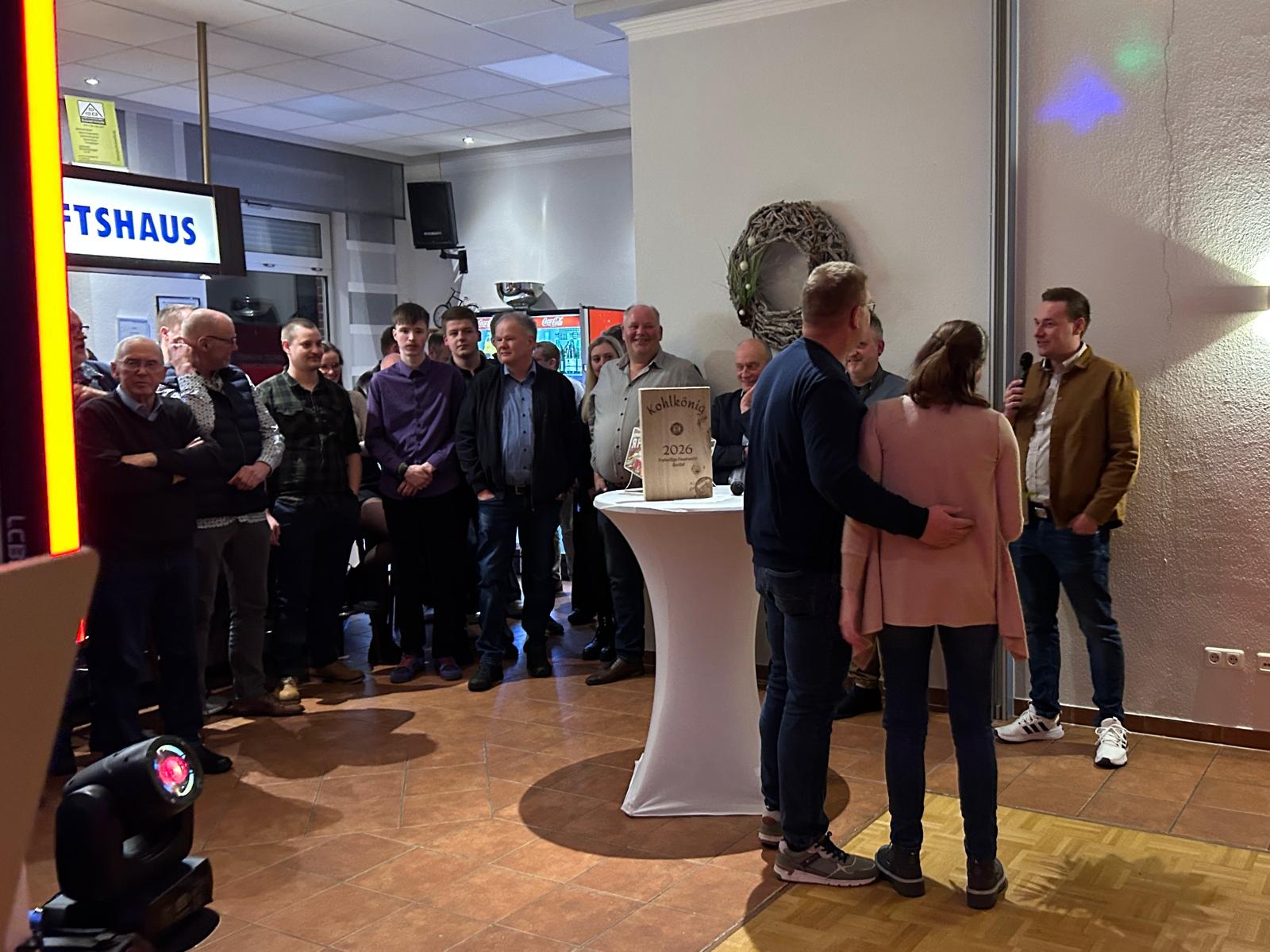 Dann wurde es spannend: Die Wahl der neuen Majestäten stand an! Unter riesigem Jubel wurden unser Kamerad Andreas und seine Frau Ronja zum neuen Kohlkönigspaar gekürt. Ein würdiges Paar, das direkt gezeigt hat, wie man eine Tanzfläche anführt.