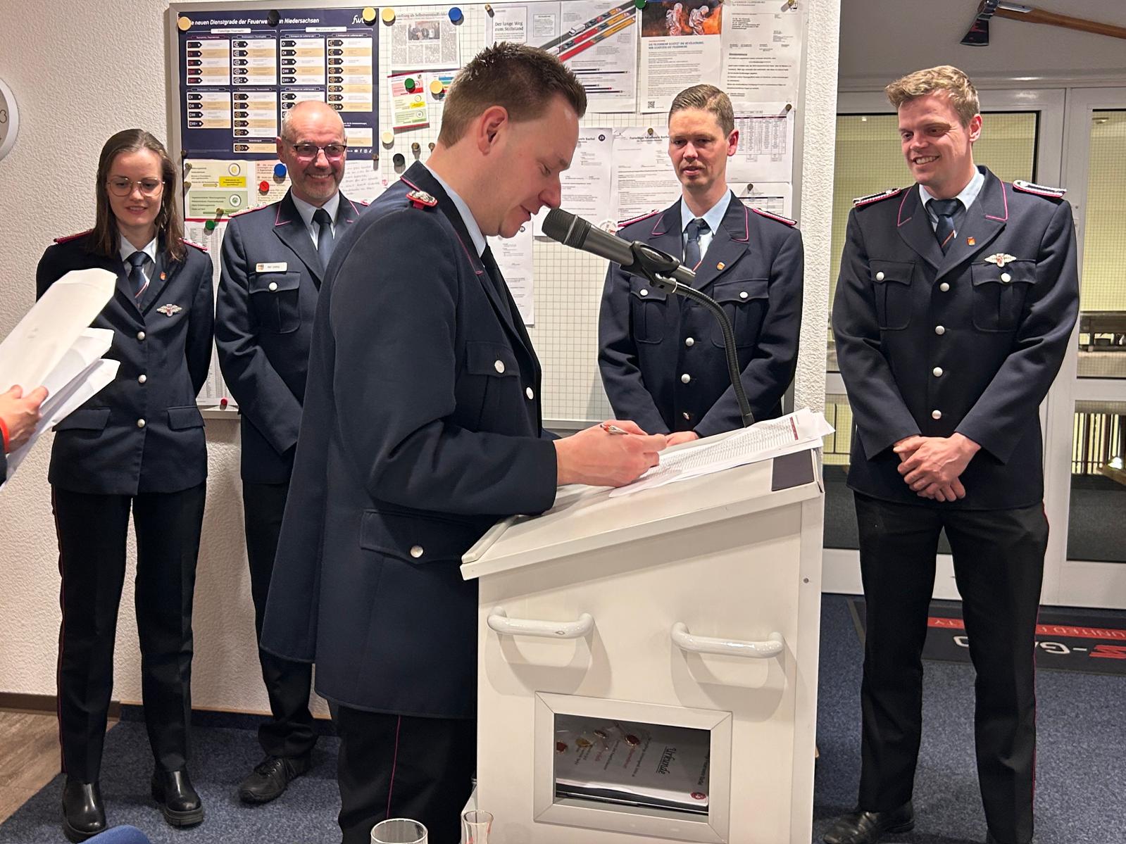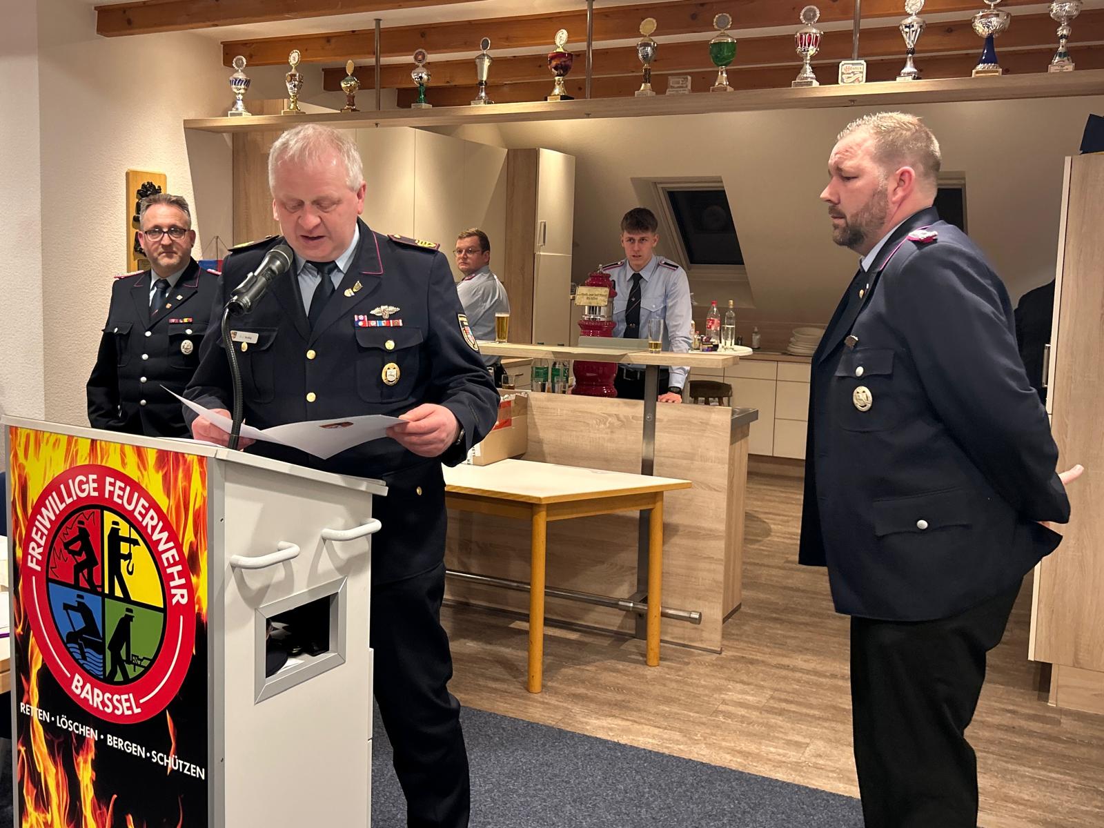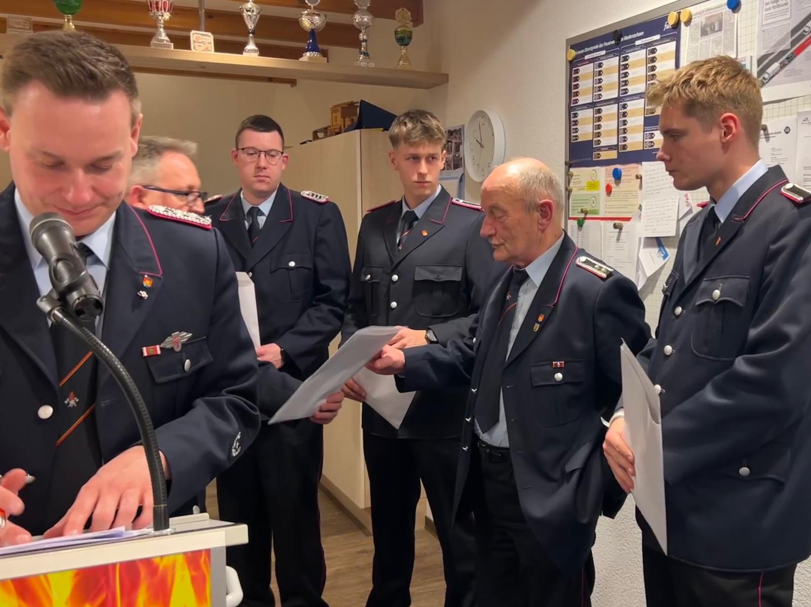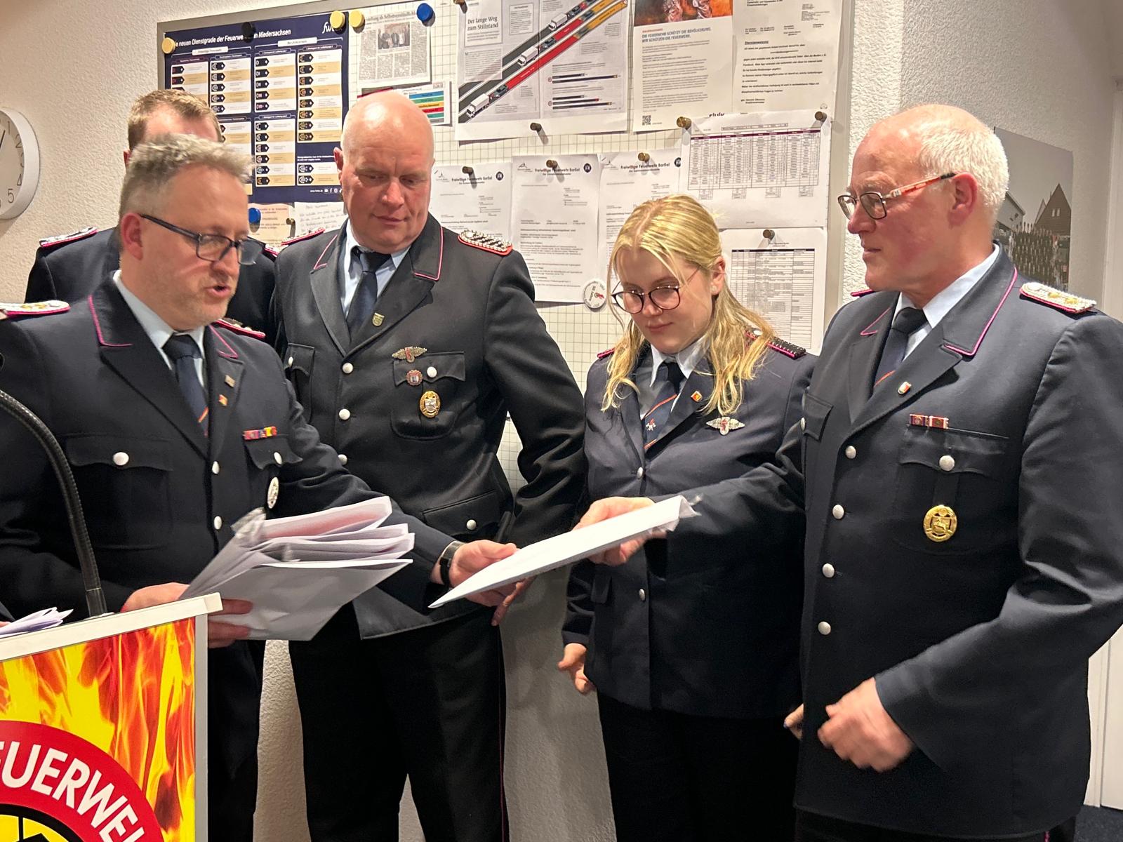 In ihren Grußworten dankten Bürgermeister Anhuth und der stellvertretende Kreisbrandmeister der Feuerwehr für ihr Engagement. Ein wichtiges Thema war dabei die neue Feuerwehrverordnung des Landes Niedersachsen, die unter anderem Änderungen bei Dienstgraden sowie zukünftige Anpassungen bei Uniformen vorsieht.