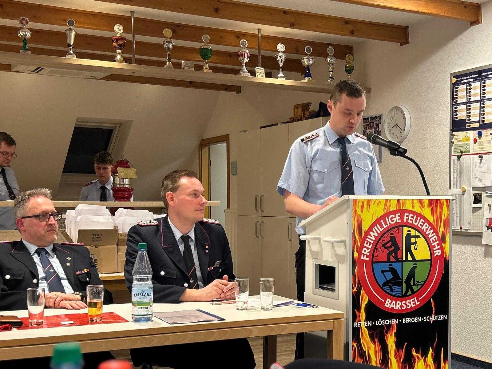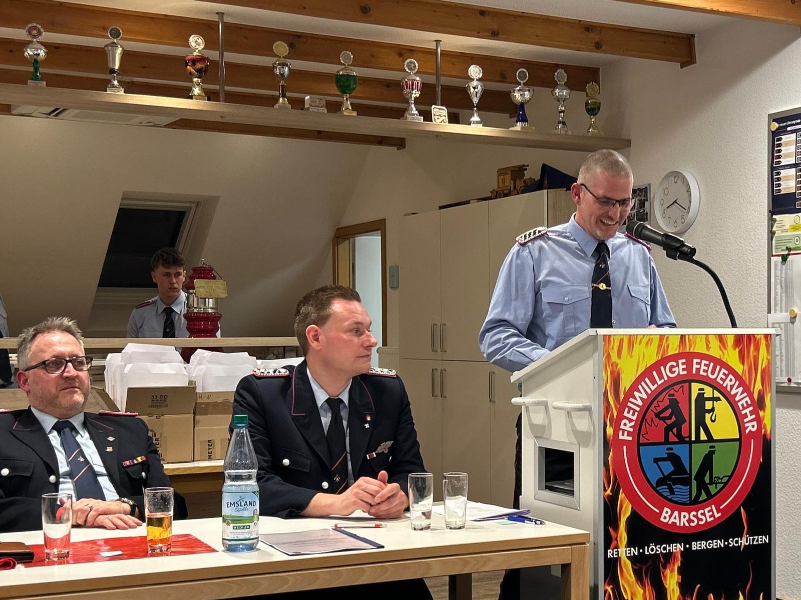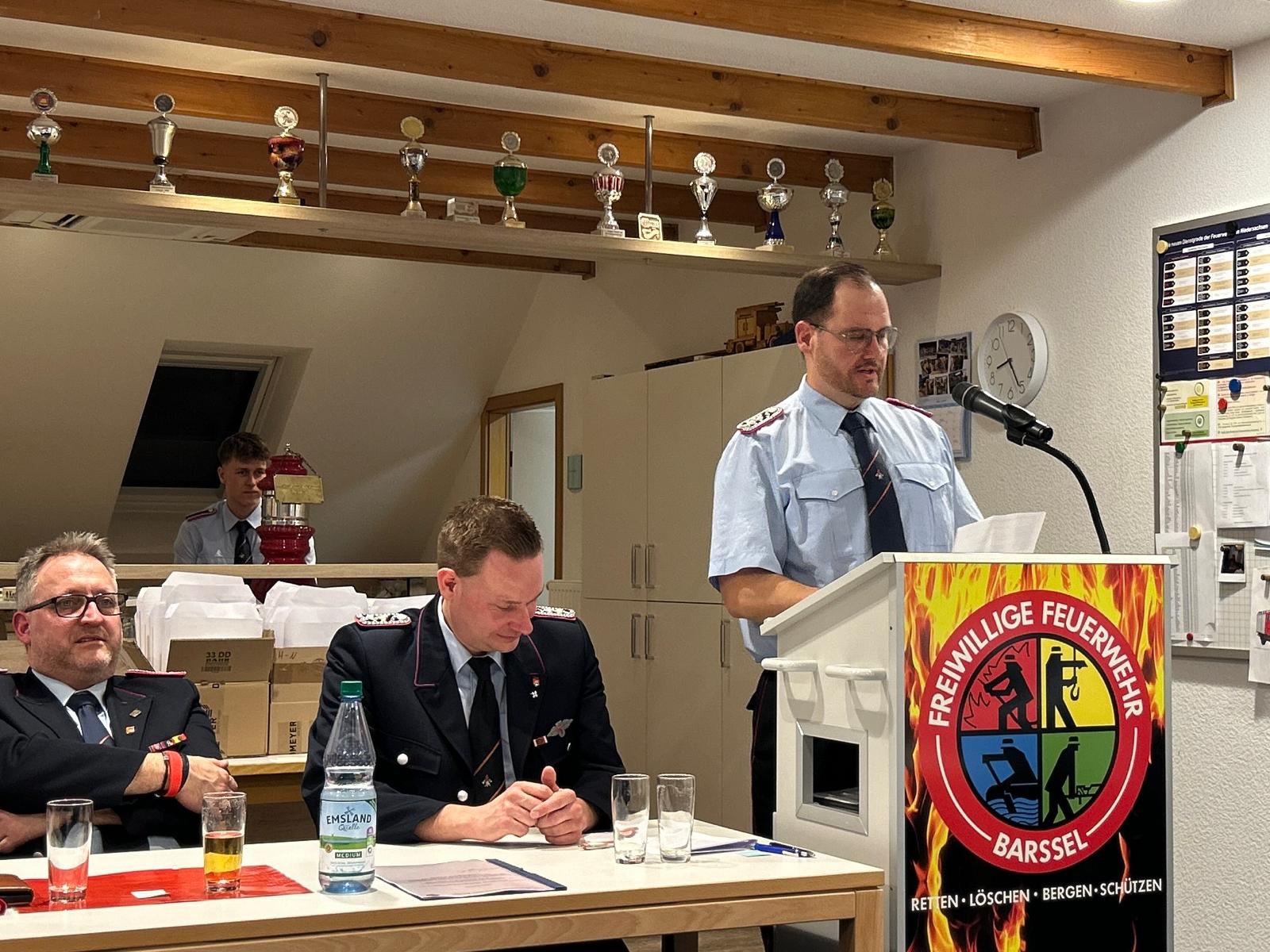 Am 6. März 2026 fand im Feuerwehrhaus Barßel die Mitgliederversammlung der Freiwilligen Feuerwehr Barßel statt. Gemeindebrandmeister Johannes Meiners-Hagen eröffnete die Versammlung und begrüßte neben den anwesenden Kameradinnen und Kameraden auch Bürgermeister Nils Anhuth, den stellvertretenden Kreisbrandmeister Franz-Josef Nording, die Alterskameraden sowie Ehrenmitglied Hans Eveslage.