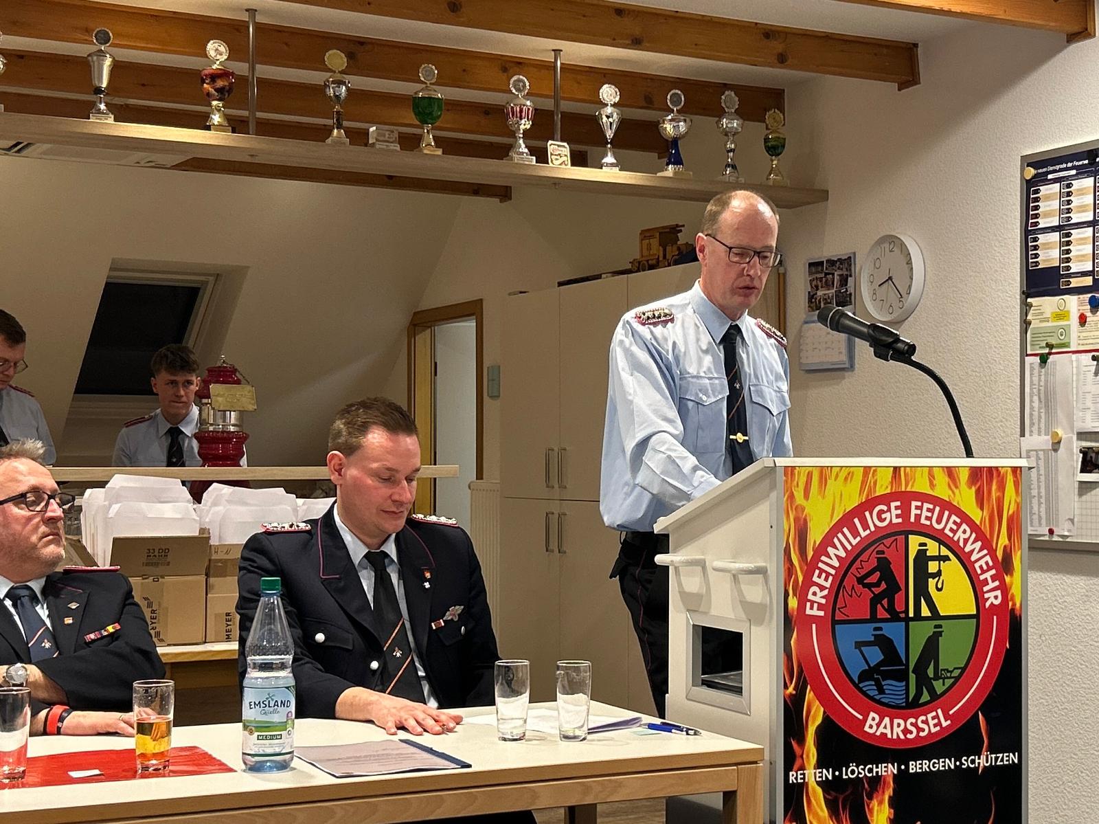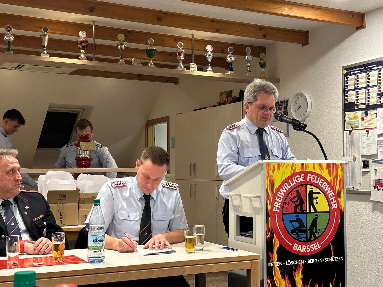 Gemeindebrandmeister Johannes Meiners-Hagen bedankte sich zum Abschluss der Versammlung bei allen Kameradinnen und Kameraden, der Gemeinde Barßel sowie den Arbeitgebern der Mitglieder für die Unterstützung der Feuerwehrarbeit.