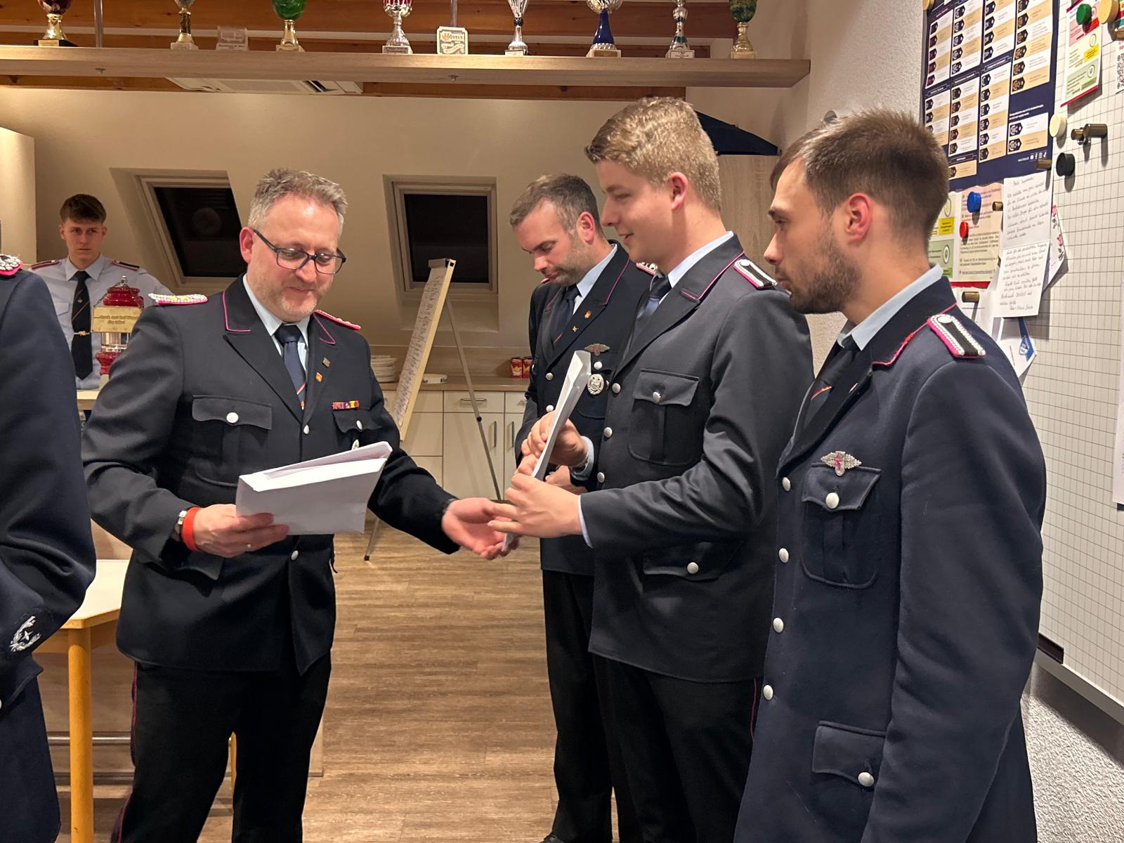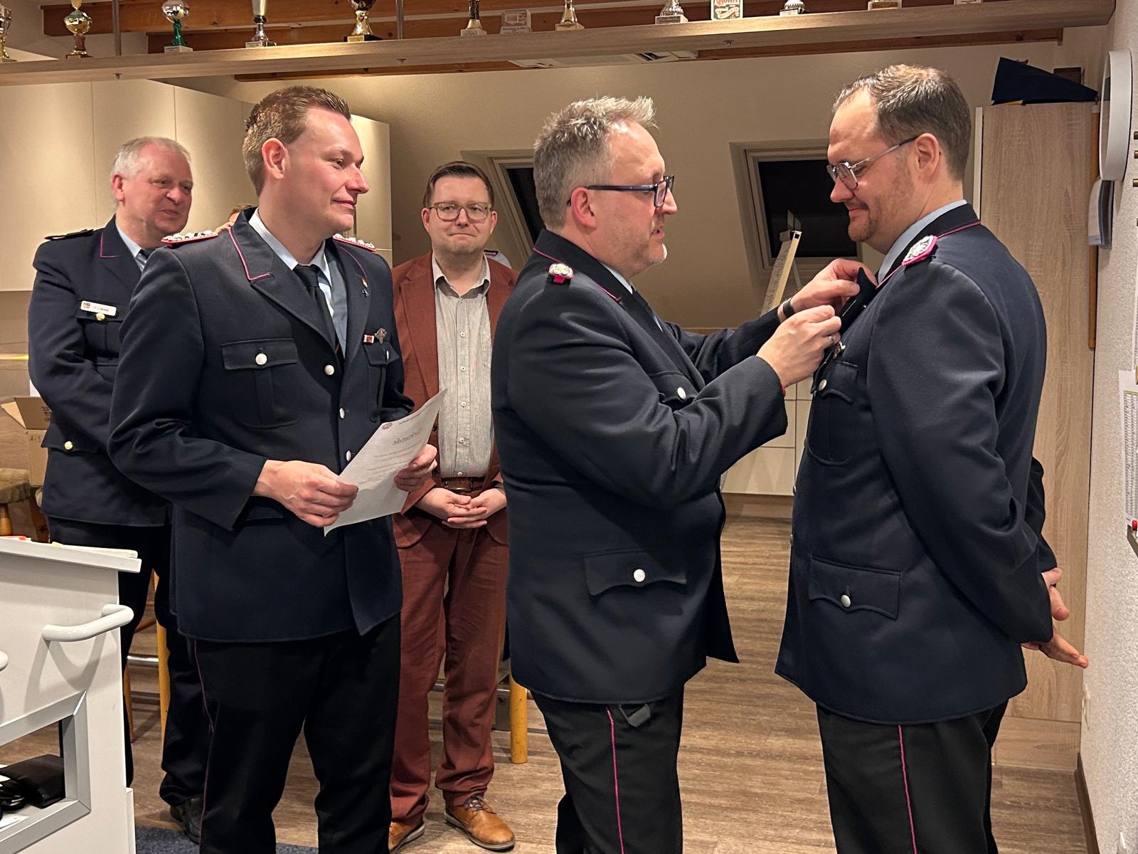 Ein besonderer Punkt der Versammlung waren die Beförderungen. Aufgrund der neuen Feuerwehrvorschrift wurden die Dienstgrade vieler Kameradinnen und Kameraden angepasst. Gemeindebrandmeister Johannes Meiners-Hagen nahm zahlreiche Ernennungen zu neuen Dienstgraden vor.